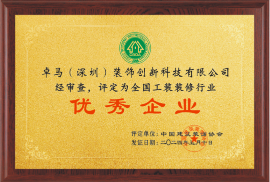 优秀企业证书